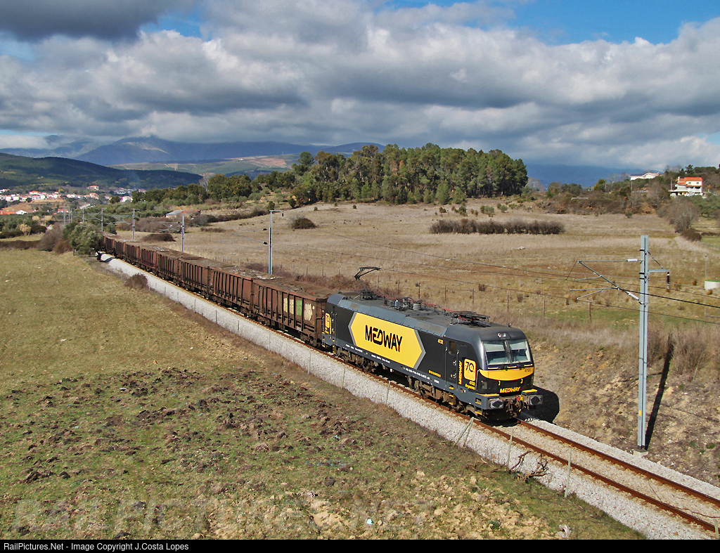 | A Medway freight train, 47890 with Siemens 4722, from Vilar Formoso to T.Siderurgia Nacional.