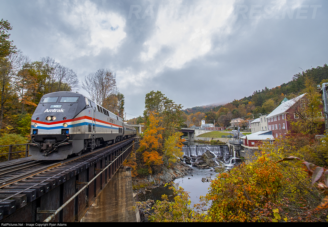 | A rainy and foggy morning has begun to dissipate as the southbound Vermonter races through the Town of Bethel. The passengers are in for a treat as much of the fall foliage is still hanging on in the sounding hills. |