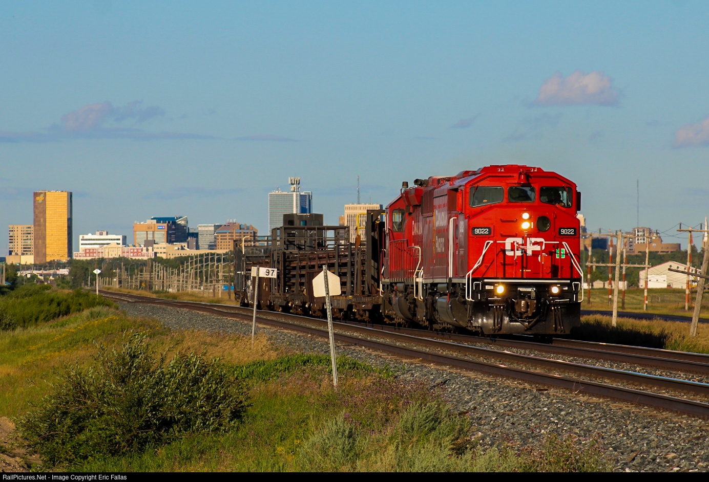 The various SD40-2Fs re-acquired by CP from the purchase of CMQ began their repaints to assimilate back into CP initials last April. The first of these units to be repainted, CP 9022, journeyed north from St. Paul into Winnipeg that May where it would spend the next 2 months running yard jobs and ballast runs to Dyment ON, only occasionally leading when running light power within yards. In July, this routine would change when it was placed on a CWR bound for the rockies with ex-SOO CP 6607 leading according to my sources. My head canon is that part of its CWR loads were dispersed along the way, likely leading to the power being wyed in Brandon as it spent a few days there. Once it departed on its way west again, CP 9022 would lead for the first time on the mainline under CP initials in almost a decade, exactly 3 months after it was released from the shops in St. Paul. The dry prairie atmosphere allowed for an evening of clear skies as it made its way through southern Saskatchewan. A strategically planned bike ride to the western edge of town with a promise I would be back in one hour yielded this capture of CWR-27 shortly after departing Regina with the skyline on display behind it.