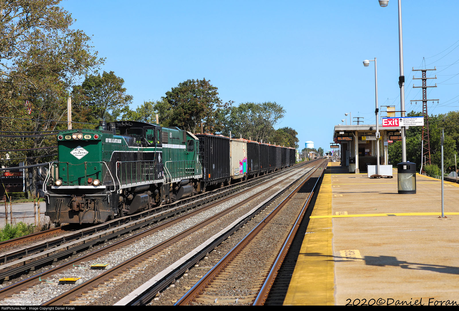 The RS41 is seen heading westbound through Bellerose station on their way back to Fresh Pond Yard after switching at One World Recycling on the Central Branch. As of October 2022 MP15AC 156 is going through rebuild.