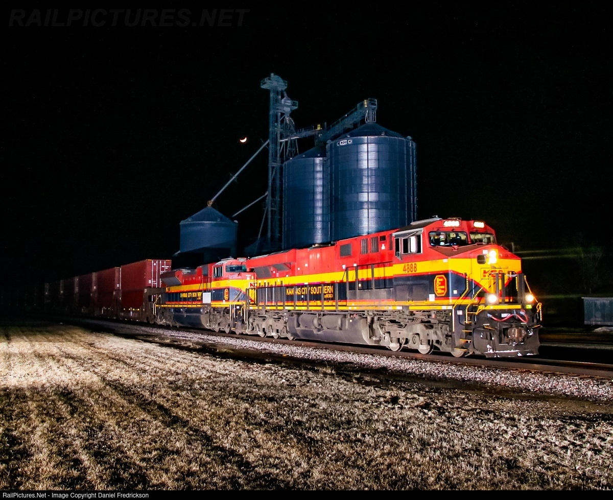 CP 183, a stack train originating in Lazaro Cardenas in Mexico to Bensenville, IL, rolls through Leaf River, IL with two KCSM units in charge. The train is testing transit times between the two aforementioned endpoints in anticipation of a new intermodal lane opening as a result of the CPKC merger. The containers ended up taking seven days to get to Chicago from start to finish.