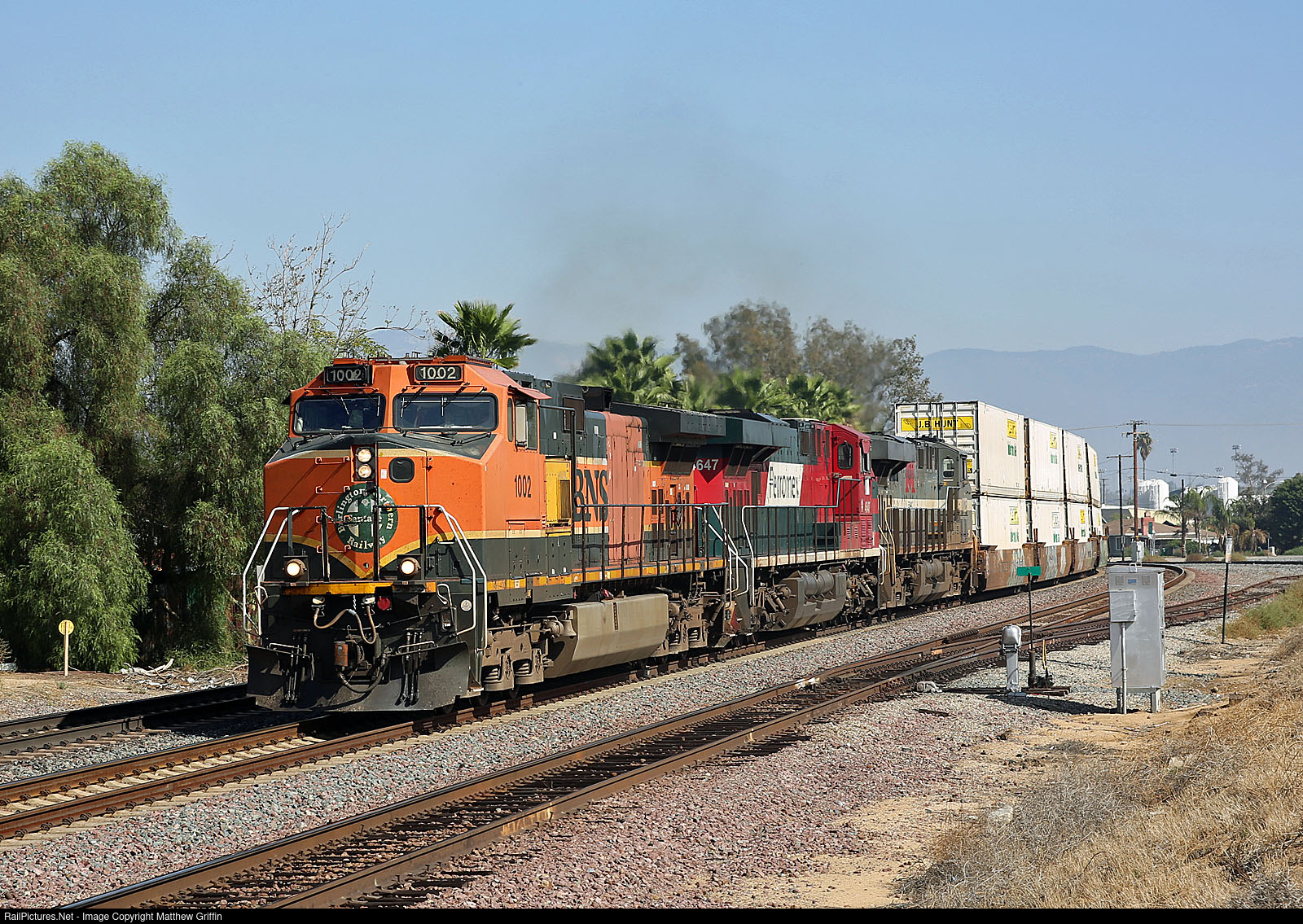RailPictures.Net Photo: BNSF 1002 BNSF Railway GE C44-9W (Dash 9-44CW) at Highgrove, California by Matthew Griffin