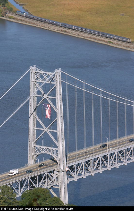 Bear Mountain Bridge is resplendent in the mid afternoon sunshine as the Lake Shore Limited streaks nortward towards Albany.