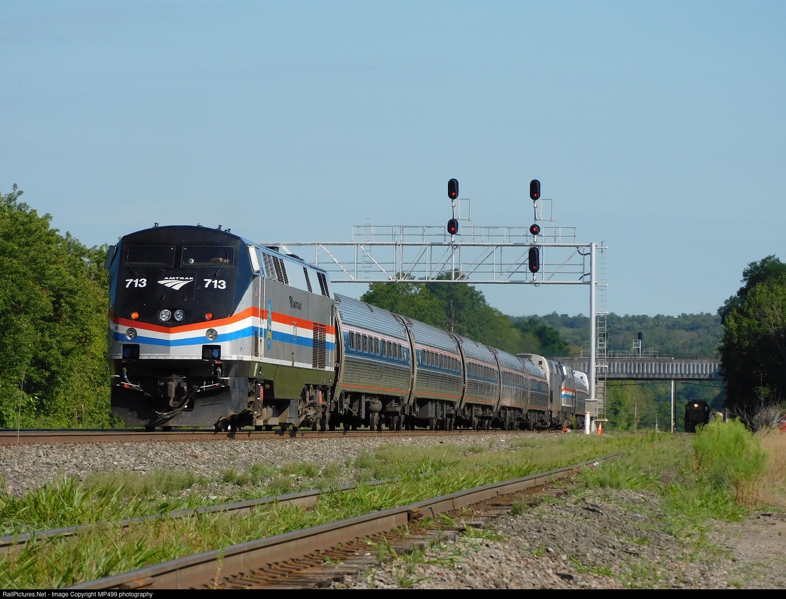 | Amtrak train P942 rolls past South Schenectady Yard as CSX local L020 waits in the background. This train is the result of the shutdown of Amtrak's Hudson Line between Rensselaer and West Albany. The line was shut down due to the threat of the Central Warehouse collapsing in downtown Albany which sits just feet from the Hudson Line. The train is a combination requal/equipment move as the extra set of equipment will be used to start "Empire Service" trains out of Schenectady instead of Rensselaer. The CSX Selkirk Sub is normally freight only so this was quite the sight. |