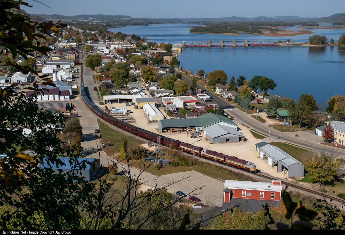 A bucket list location for many, the small river town of Bellevue, IA is home to one of the few areas in the midwest that makes the area look not so midwestern-like. Here we are high above the town, as CPs executive business train traverses through.