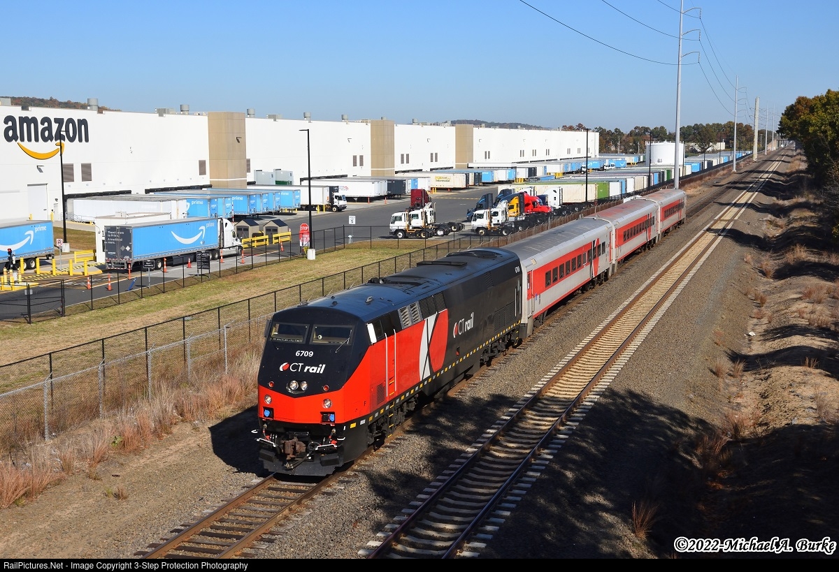 CTrail train 6401 passes Amazon's Distribution Center in North Haven.