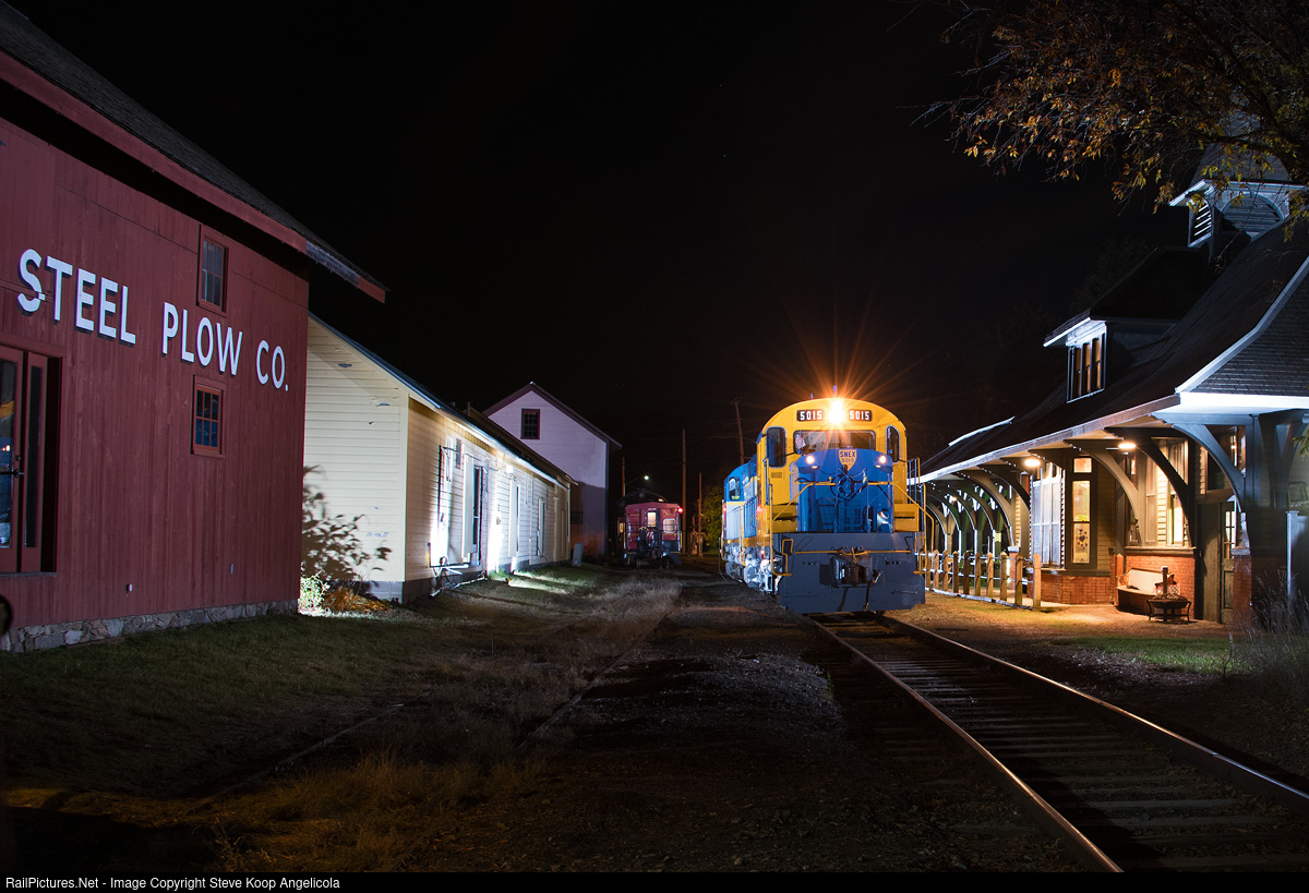 | During the Battenkill Railroads 40th anniversary celebration the newly repainted ex Delaware and Hudson RS-36 SNEX 5015 is in front of the Cambridge station for a night photo shoot. This beautiful locomotive will soon be put back in service on the Battenkill Railroad. |