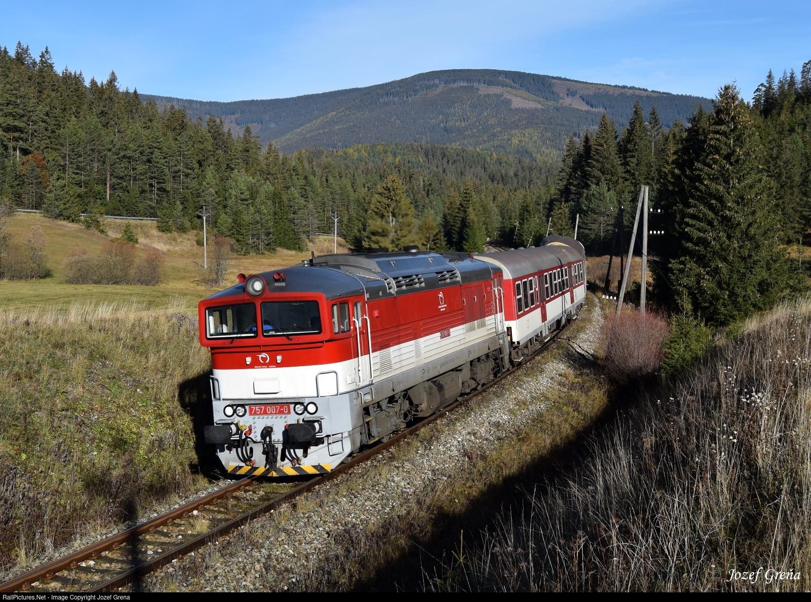 | The 757 locomotive is a dieselelectric four-axle locomotive with electrical power transmission, which was created by the overall reconstruction of older 750 series locomotives. The machines were ordered by the national carrier ZSSK for the transport of passenger trains and express trains on the main lines in Slovakia. This one has the nickname "James Bond".