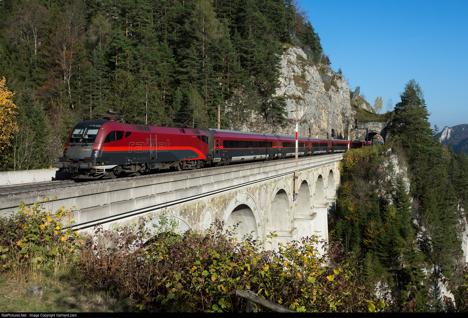 1116 235 with railjet 539 (Vienna - Lienz) crossing the the Krausel-Klause-Viaduct.