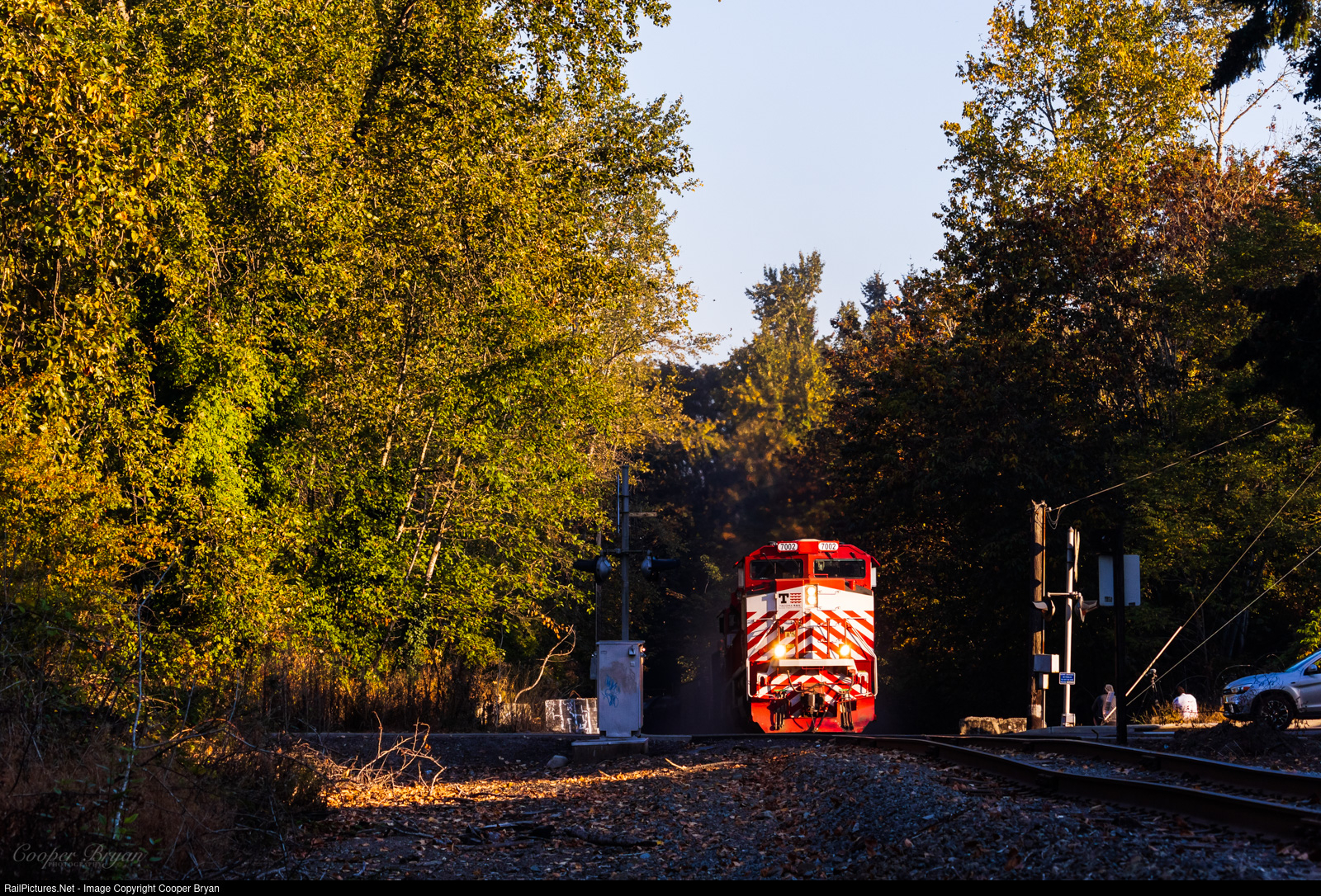 Tacoma Rail's hill job summits the 3% grade at 46th St as the sun rises this crisp autumn morning.