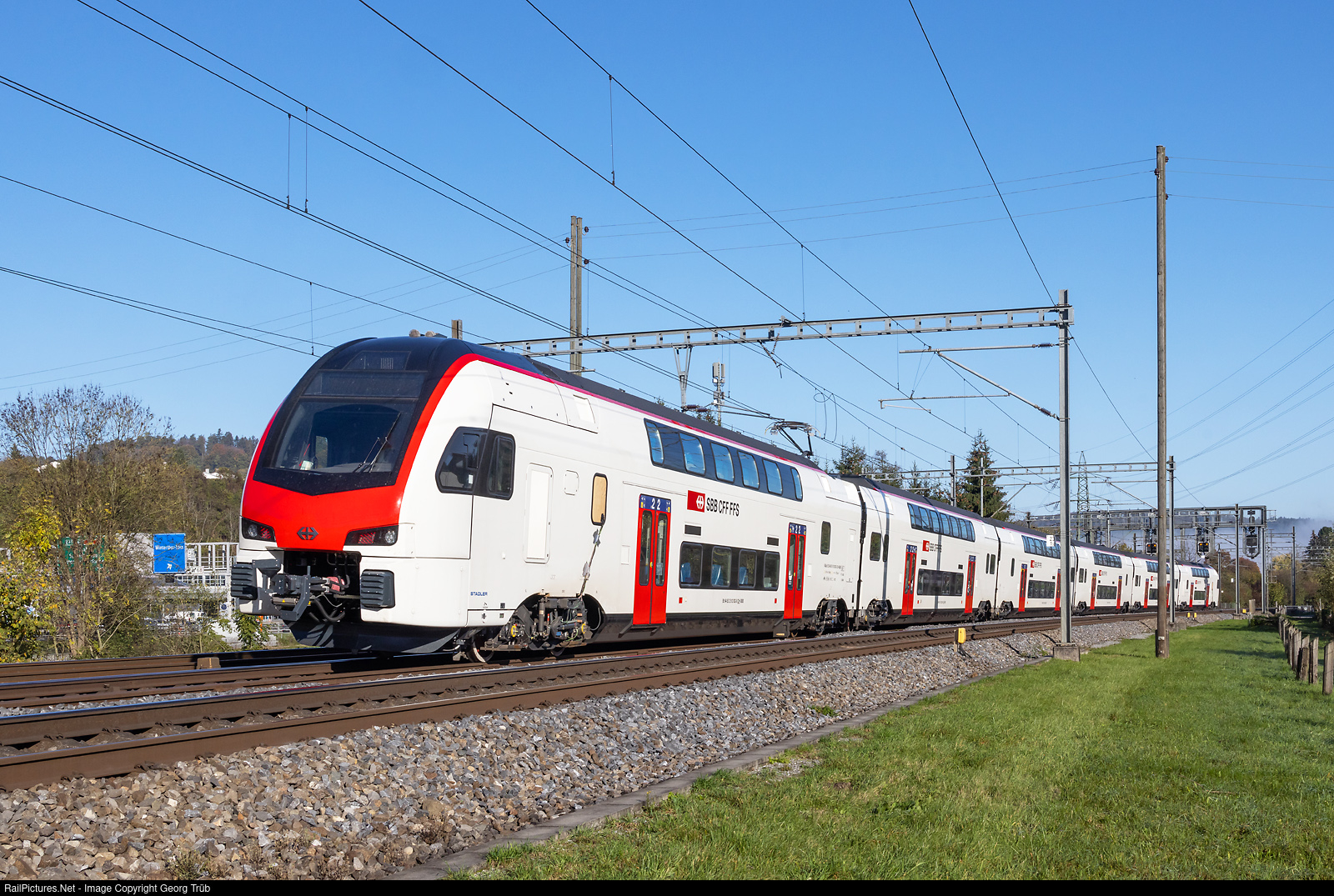 | Brand new doubledeck Interregio train RABe 512 # 002 from StadlerRail for the SBB on a test run 97115 from Regensdorf-Watt via Kloten to Winterthur Grüze, in Winterthur Tössmühle. The SBB ordered 60 of this trains in april 2021, about 5 are on test runs already. Timetabled service is planned from autumn 2023. |