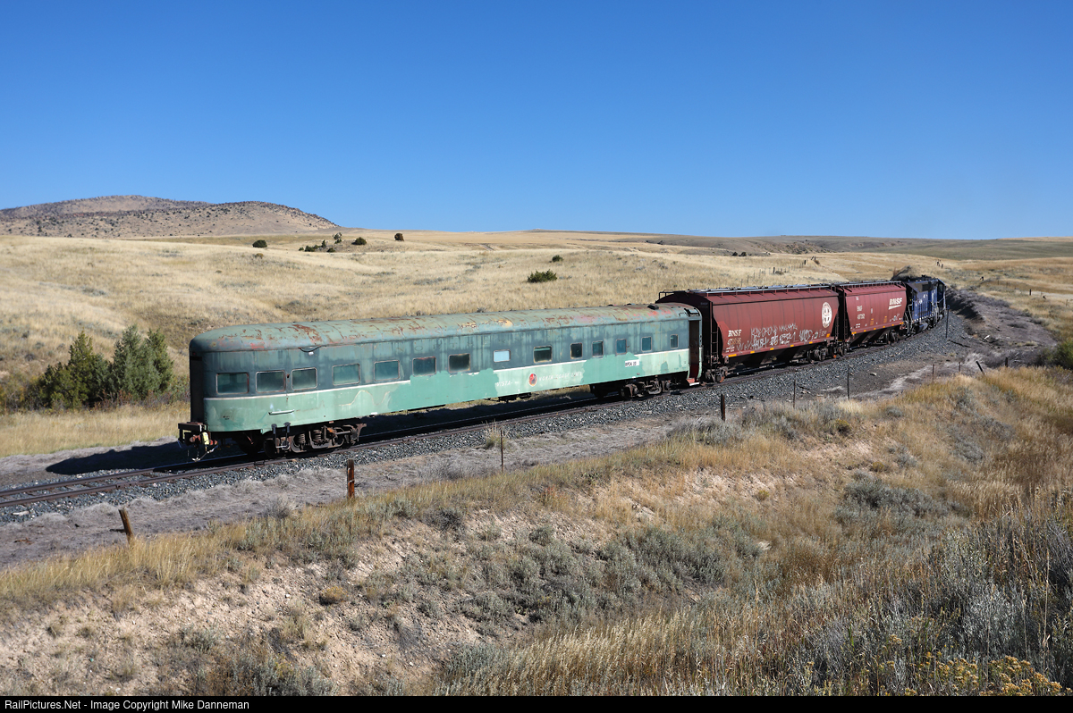 Montana Rail Link’s 844 local trundles upgrade on the branch to Harrison, Montana, on October 4, 2022. On the rear of the train is weatherbeaten Northern Pacific observation car No. 391 that is headed to a new owner, and will be trucked from the end of track at Harrison. Originally named “Arlington Club”, it was built by Pullman-Standard in 1948 for service on NP’s North Coast Limited, and included four double bedrooms, one compartment, a buffet-kitchen and a 26-seat observation lounge.