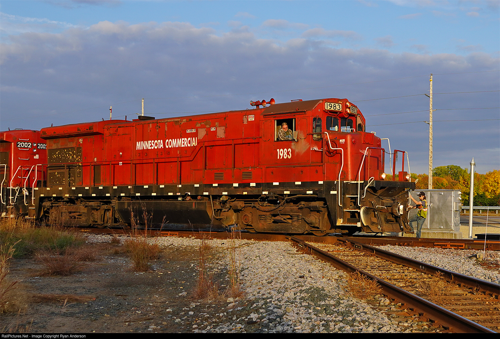MNNR 1983 and 2002 ride the wheel flanges across the CN diamond in White Bear Lake.