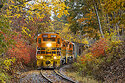 UBHF charges upgrade towards Sabillasville on a rainy fall morning as they approach the bridge over Owens Creek.