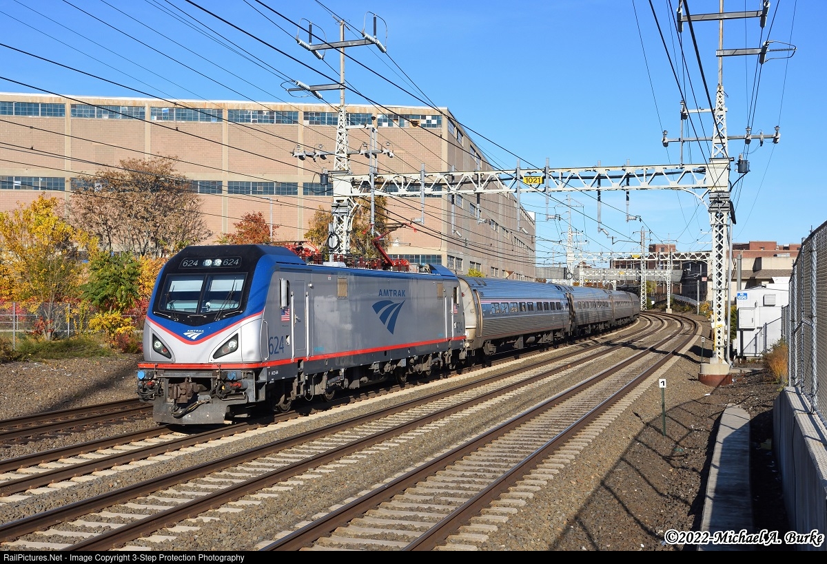 On the afternoon of Sunday, October 30, 2022, a 3-hour late Northeast Regional train 161 passes in West Haven. This train departed Boston at 9:30am but was delayed twice due to striking a trespasser in Westerly, RI, and having mechanical issues in New Haven.
