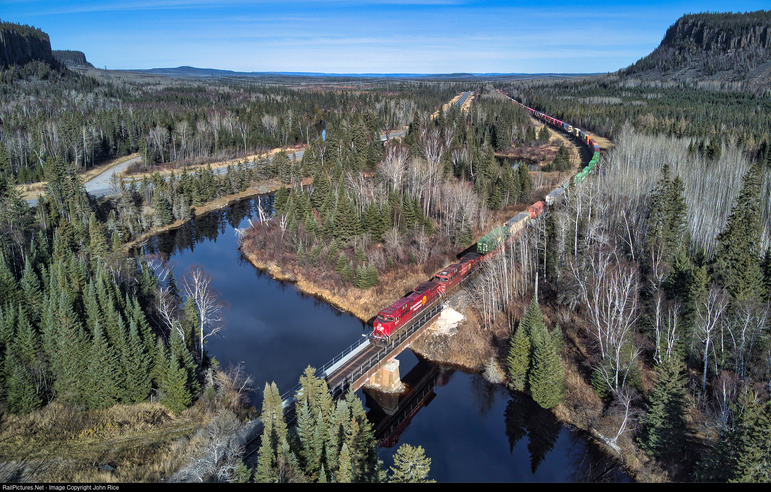 CP train 119 crossing the Jackfish River to take the siding at Firehill for a meet with train 113.