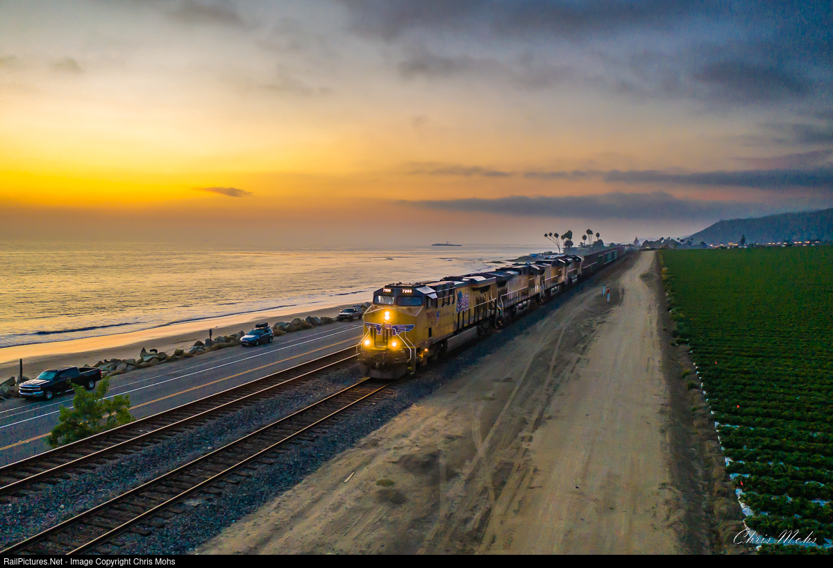 Sunset on the Santa Barbara Subdivision at Seacliff. The southbound Guadalupe Local with ES44AC no. 7999 doing the honors as it rolls along the Ventura Coastline.