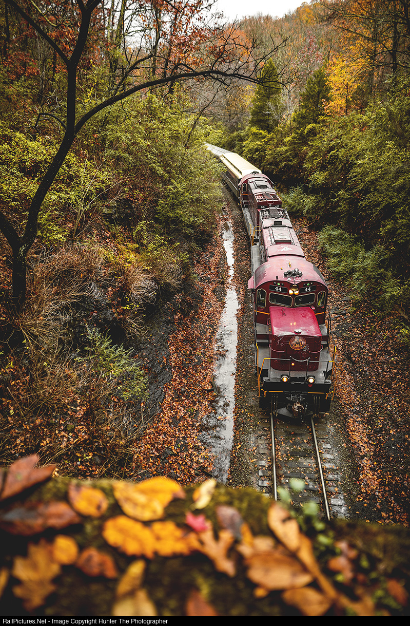 Autumn is in full swing in Winslow, AR, where we see an Arkansas & Missouri Railroad excursion train heading south on the overcast morning of Saturday, November 5, 2022. This excursion train is just a couple of seconds from entering the tunnel in Winslow, a bore that dates back to the late 1800s when the St. Louis-San Francisco Railway ran through here.