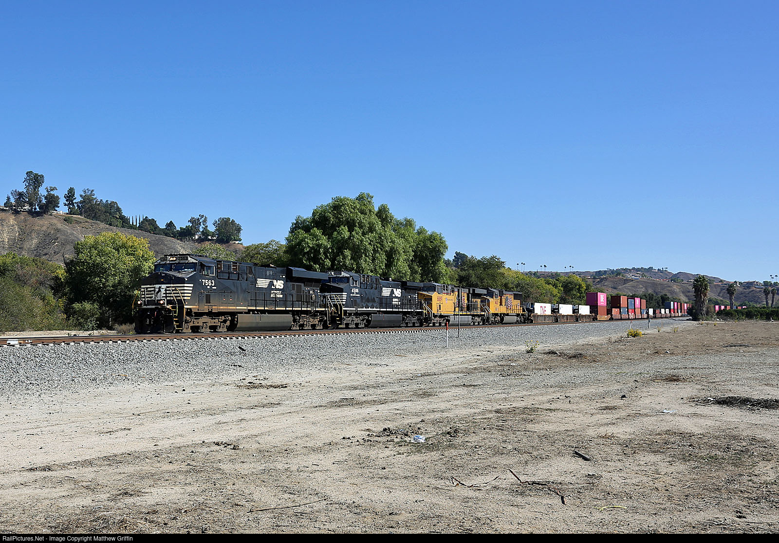 RailPictures.Net Photo: NS 7563 Norfolk Southern GE ES44DC at San Timoteo Canyon, California by Matthew Griffin