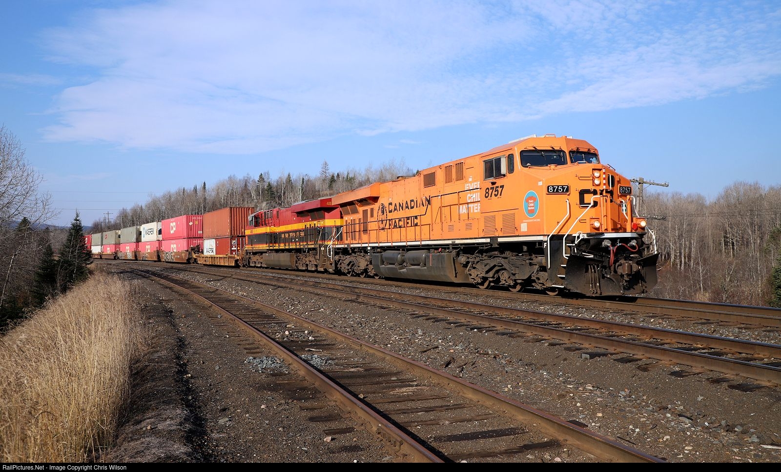 RailPictures.Net Photo: CP 8757 Canadian Pacific Railway GE ES44AC at Coldwell, Ontario, Canada by Chris Wilson