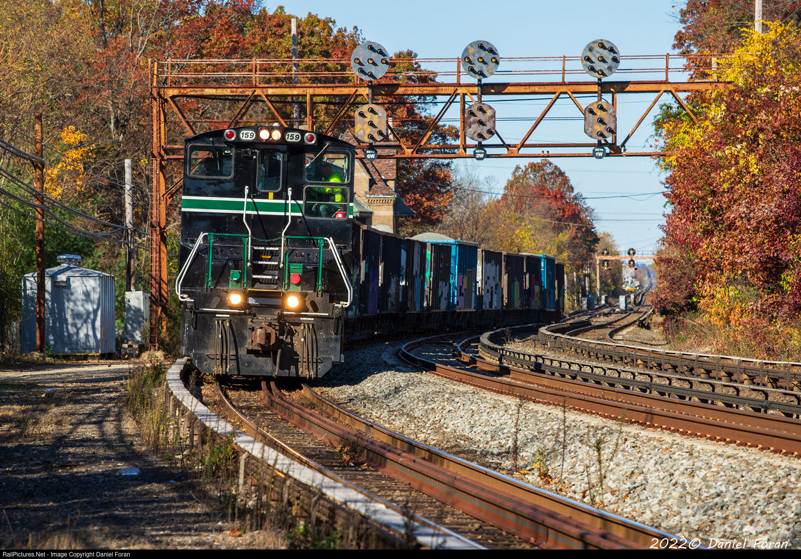 Heading eastbound over the split between the Mainline and the Central branch the RS40 takes the diverting route towards One World Recycling on the Central Branch. The crew wyed the power in Fresh Pond Yard leaving 159 leading for the trip east compared to yesterday's photo at Merillon Ave it was leading westbound.