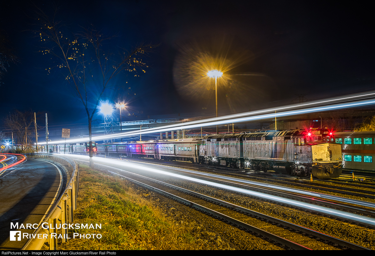 The Boxes Returned. Life as we knew it came to an abrupt halt as other priorities were put aside and all eyes turned to the remaining operable pair of NJ Transit EMD F40PH-2CATs. Gone but not forgotten, they were off of the active passenger rotation for quite a while before re-emerging in work service. They spent a few days paired up, making a select number of NJT trains look like fan trips. Once declared "fit for service" they were separated and still operate in disco stripes today. One the night of November 9, 2020, NJTR 4120 and 4119 have arrived at NJ Transit's Suffern Yard and are parked as a Port Jervis train passes in the foreground.