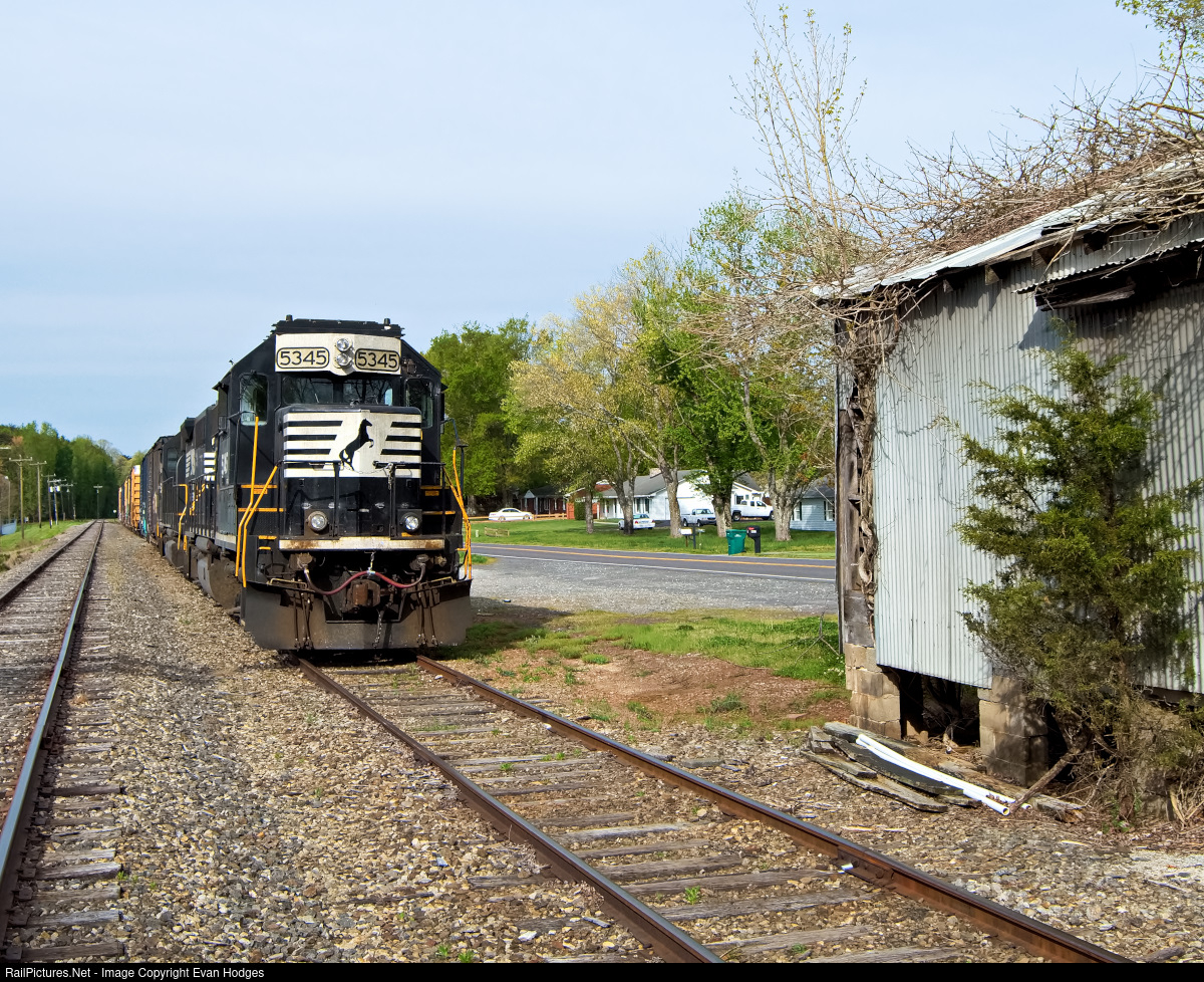 | NS P84 sits tied down on the siding track beside of the old Clemmons freight building, which was a part of the old depot that once stood beside of it decades ago before it was torn down.