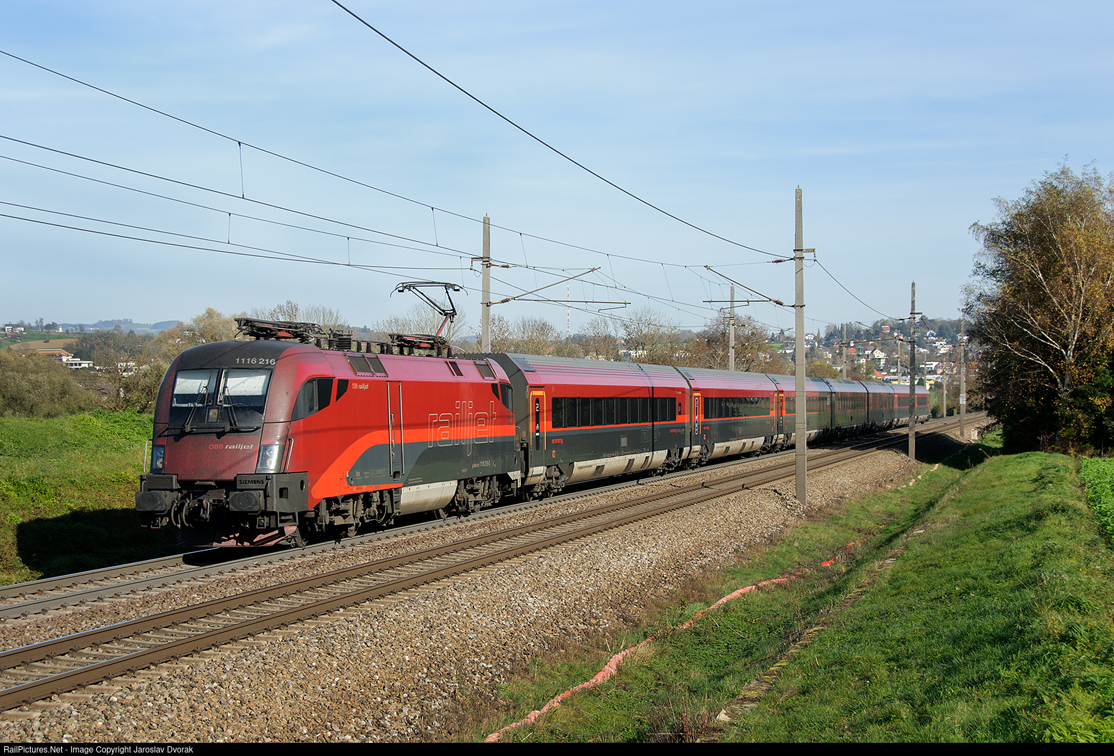 RailPictures.Net Photo: RAILJET 116 216 3 Austria Federal Railways (ÖBB) RAILJET 1116 at Linz - Leonding, Austria by Jaroslav Dvorak