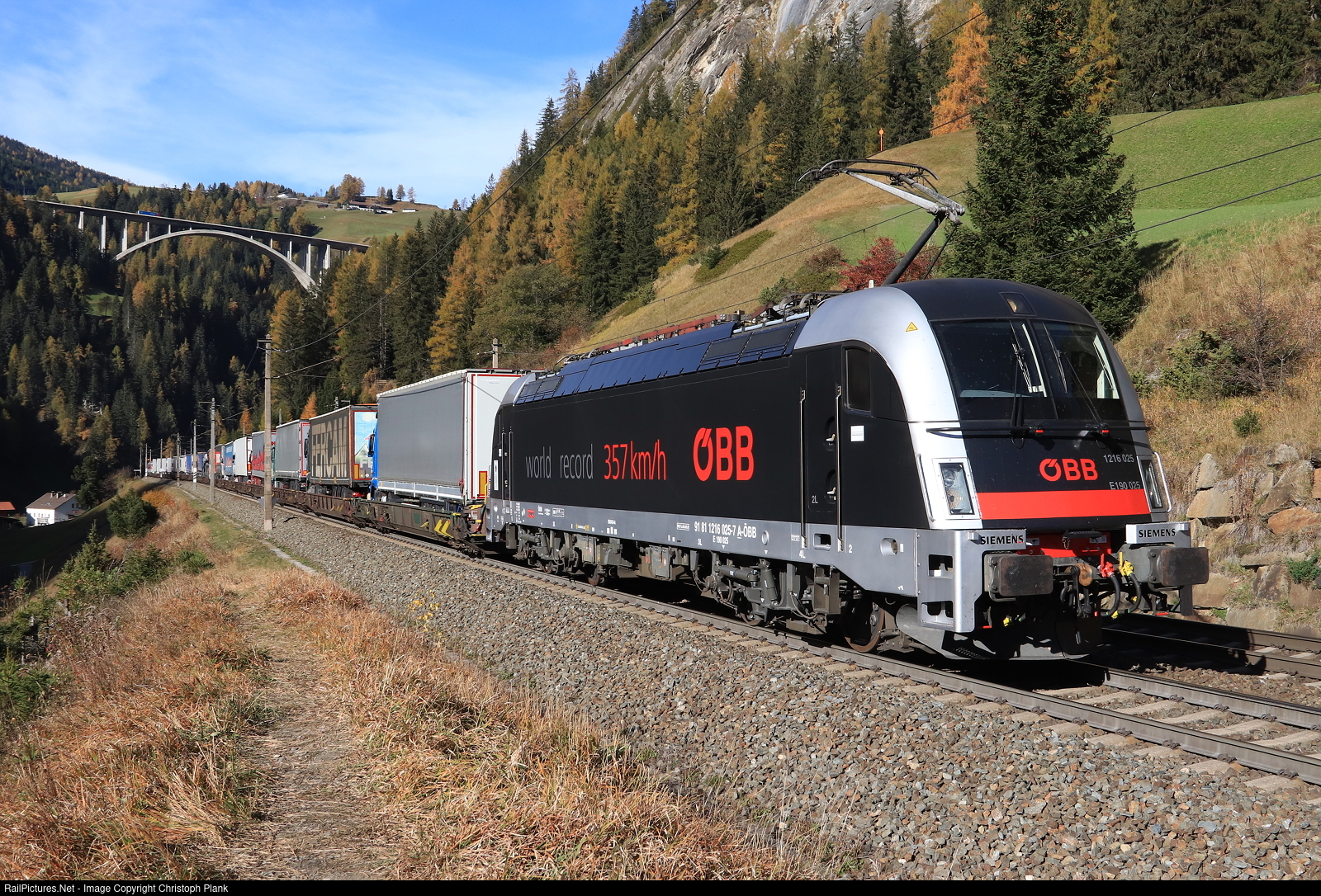 | ÖBB 1216 025 "World Record 357 km/h" special livery heading to Brennerpass with a "ROLA" (rolling land street). This Loco made the Guinness World Record drive on the 2nd of September 2006 in Germany for the fastest conventional electric locomotives on the world |