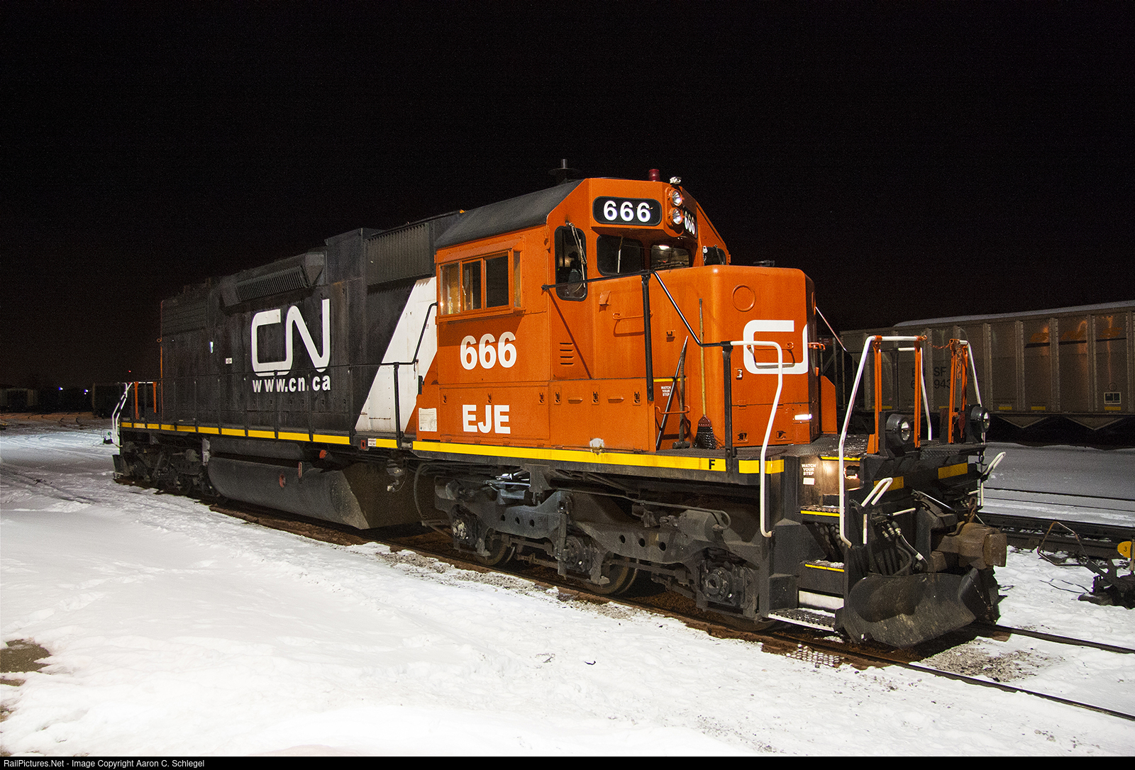 Not long after the EJE 666 got its Black and Red makeover to CN colors the 666 was re-numbered to EJE 676. So this was a short lived number on the Black and Red Paint. Having run the "Devil Engine" myself we used to joke about it.