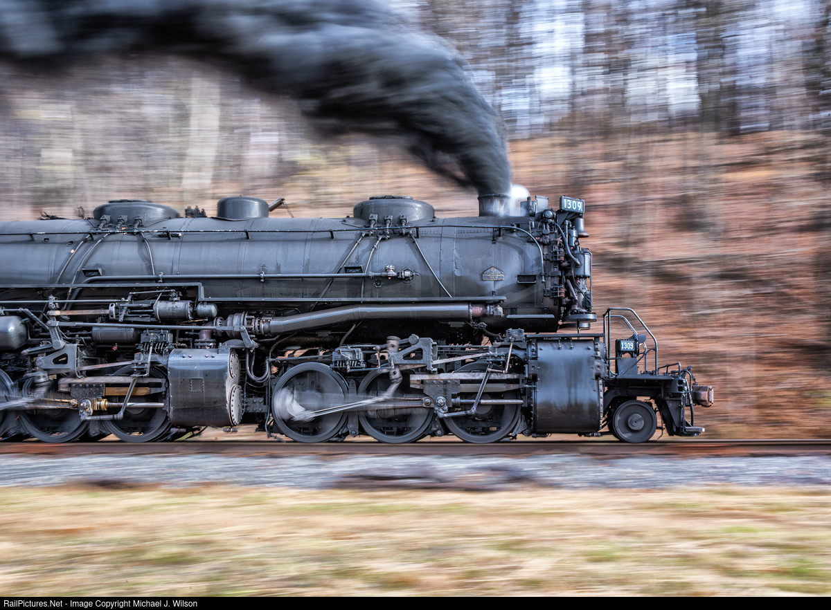 "Class H-6 in a Hurry": O. Winston Link has a famous photo of a Class A in full charge outside of Blue Ridge, VA on the N&W Blue Ridge Grade in the late 1950s during the last years of N&W steam. While a C&O, Baldwin built, H-6 compound really wasn't meant for 60, why not imagine? Here, #1309 races outside of Mt. Savage, MD on November 5, 2022 at Sunnyside for the Trains Magazine photo charter. Conventional pan taken at 1/13th a second.