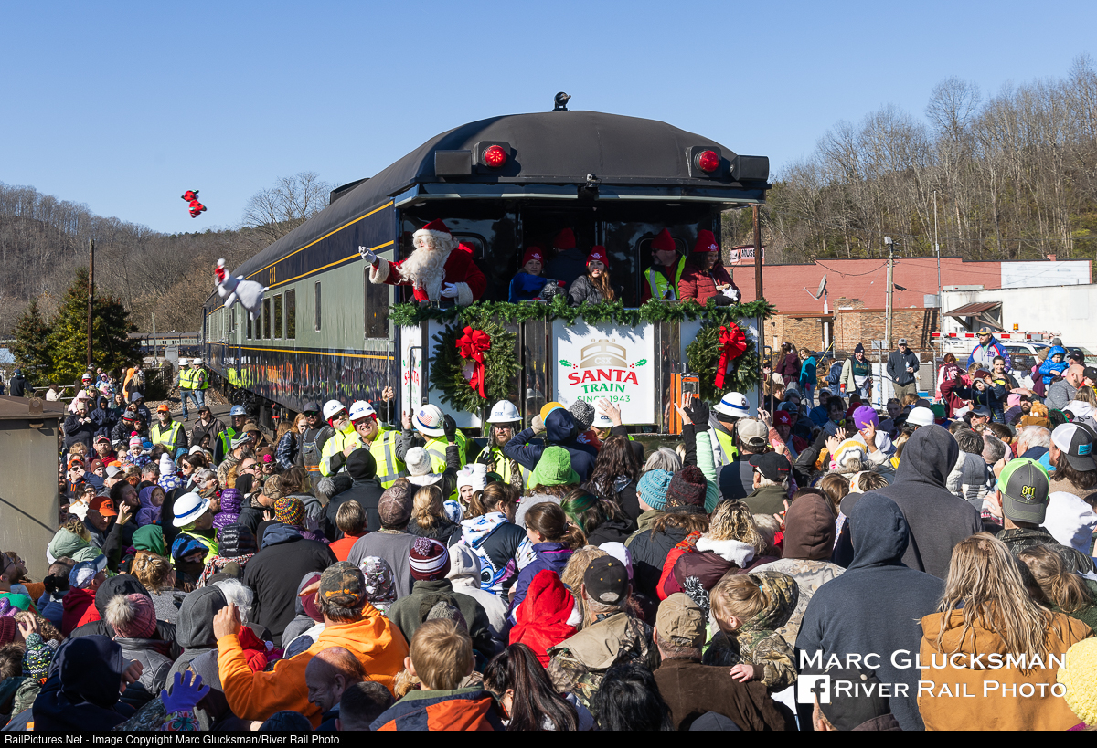 The Scene In St. Paul. St. Paul, Virginia, as aways, was one of the most heavily attended stops on The Santa Train 2022. The tracks are shut down by CSX workers as the crowd surrounds Santa on CSX's "Jervis Langdon Jr."on the rear car of the train. The spirit of the legacy of the Clinchfield Railroad "The Santa Train" was in the air on Saturday, November 19, 2022 as it celebrated its 80th year. Although absent from the rails since 2019, during which time deliveries were made by truck, CSX brought out its Baltimore & Ohio Railroad (B&O) tribute painted Office Car train for the occasion in 2022. The route, which runs from Shelbiana, Kentucky to Kingsport, Tennessee, including through Clinchco, Virginia, named for the Clinchfield Railroad and the Clinchfield Coal Corporation.