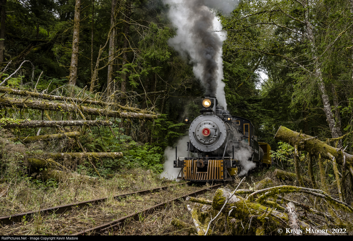 Timber! Just north of Bay City, OR and only yards from Tillamook Bay, Polson Logging Co. Mikado #2 eases past stacks of freshly cut timber on a little-used section of former Southern Pacific track. The sight-lines created by the fallen timber highlight this beefy log-hog in her natural environment, that being the woods of the Pacific Northwest. This image was captured during a 2022 photo shoot, organized by Lerro Photography, on the Oregon Coast Scenic Railroad. It featured Polson #2, a privately-owned locomotive, which had been visiting here for several years. Alas, when this photo was taken, the engine was participating in its last event here and would shortly be departing for a new home on the Albany & Eastern Railroad in Lebanon, OR.