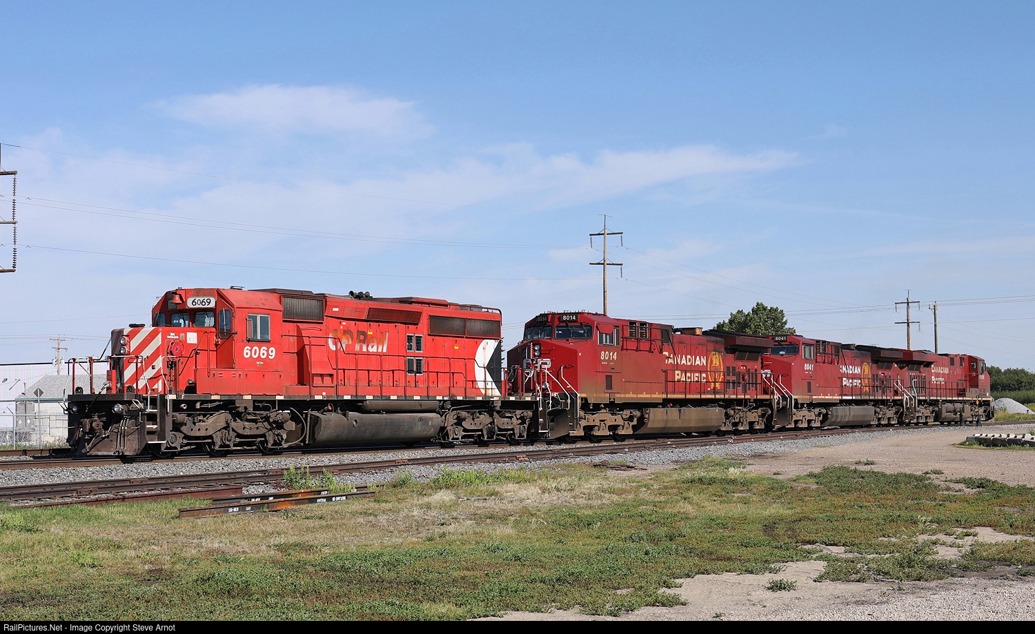 | SD40-2 6069, AC4400CWM 8014, AC4400CWM 8041 and ES44AC 8886 make a light engine move through the yard in Wetaskiwin. |