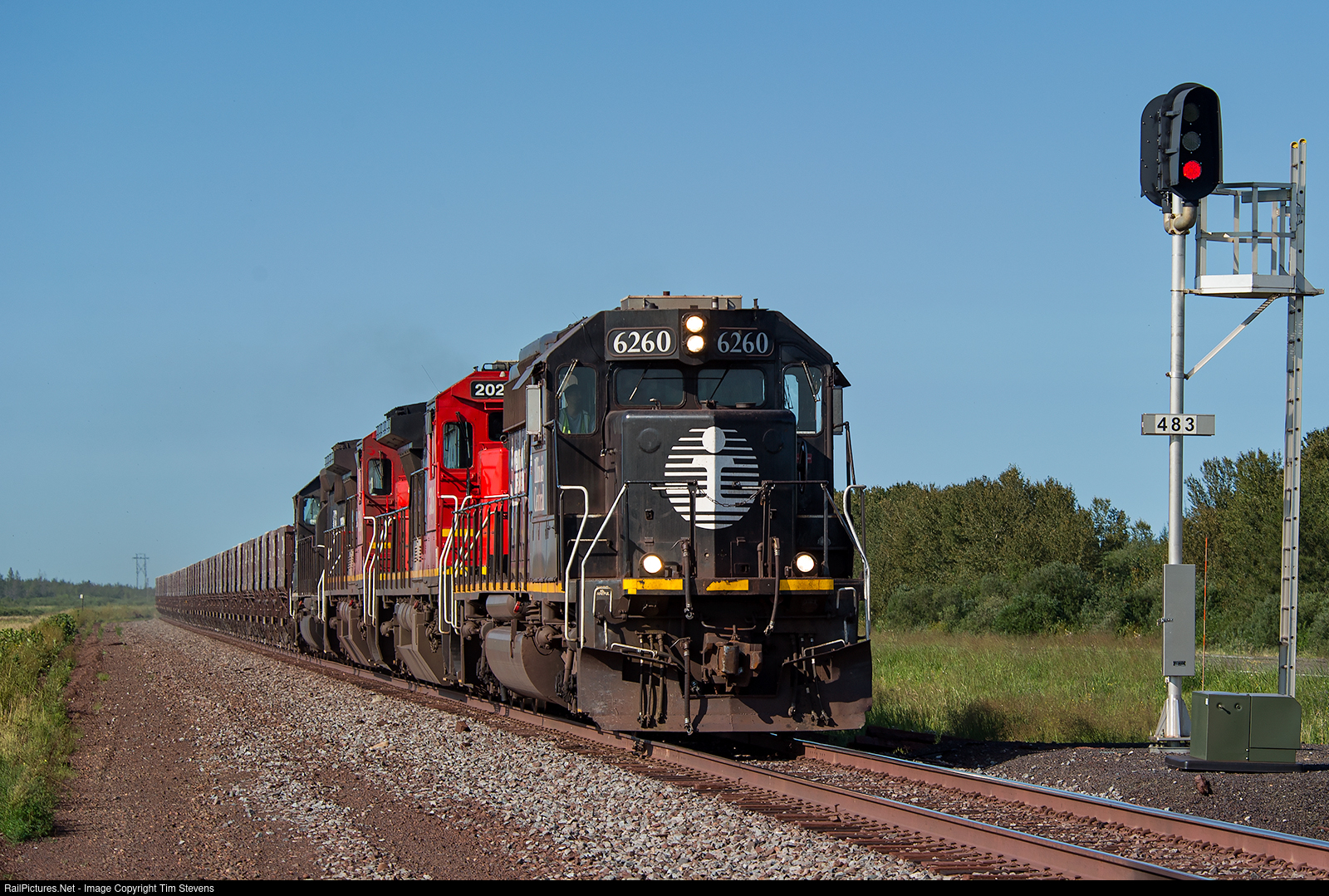 IC SD40-3 6260 is southbound with limestone empties passing the intermediate signal at Mile 48.3 on CN's Missabe Sub.
