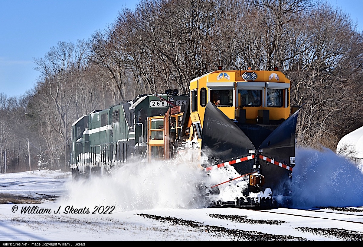 LI 4230 being pushed by New York & Atlantic GP38-2's 268 & 261 through MP 69 in Calverton. Long Island Railroad snow plow from Ronkonkoma to Greenport after Winter Storm Keenan the Blizzard of 2022.