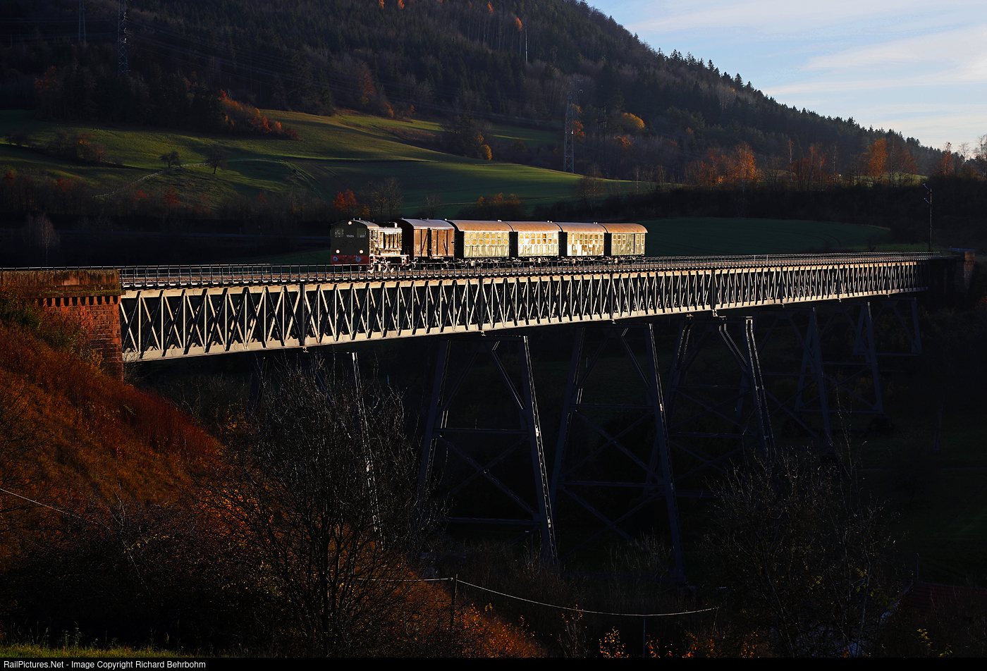 | On the Sauschwänzlebahn V 36 204 is crossing the viaduct of Epfenhofen with a train Blumberg - Fützen. |
