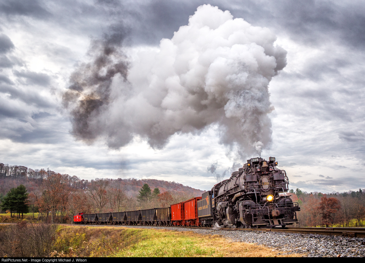 RailPictures.Net Photo: WMSR 1309 Western Maryland Scenic Railroad Steam 2-6-6-2 at Corriganville , Maryland by Michael J. Wilson