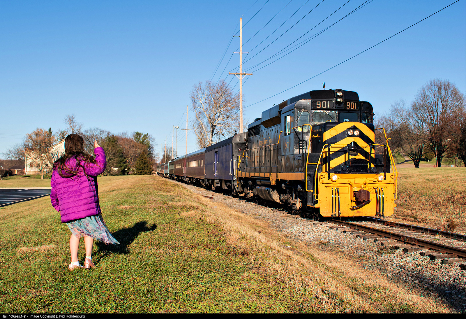 For the second weekend in a row, Our middle daughter (and biggest railfan) Naomi gives a friendly wave to the crew of the LM&M's North Pole Express, this time powered by one of the two NKP GP30's on the CRC roster, seen polishing the former CL&N rails outside of Lebanon on a beautiful but cold December afternoon.