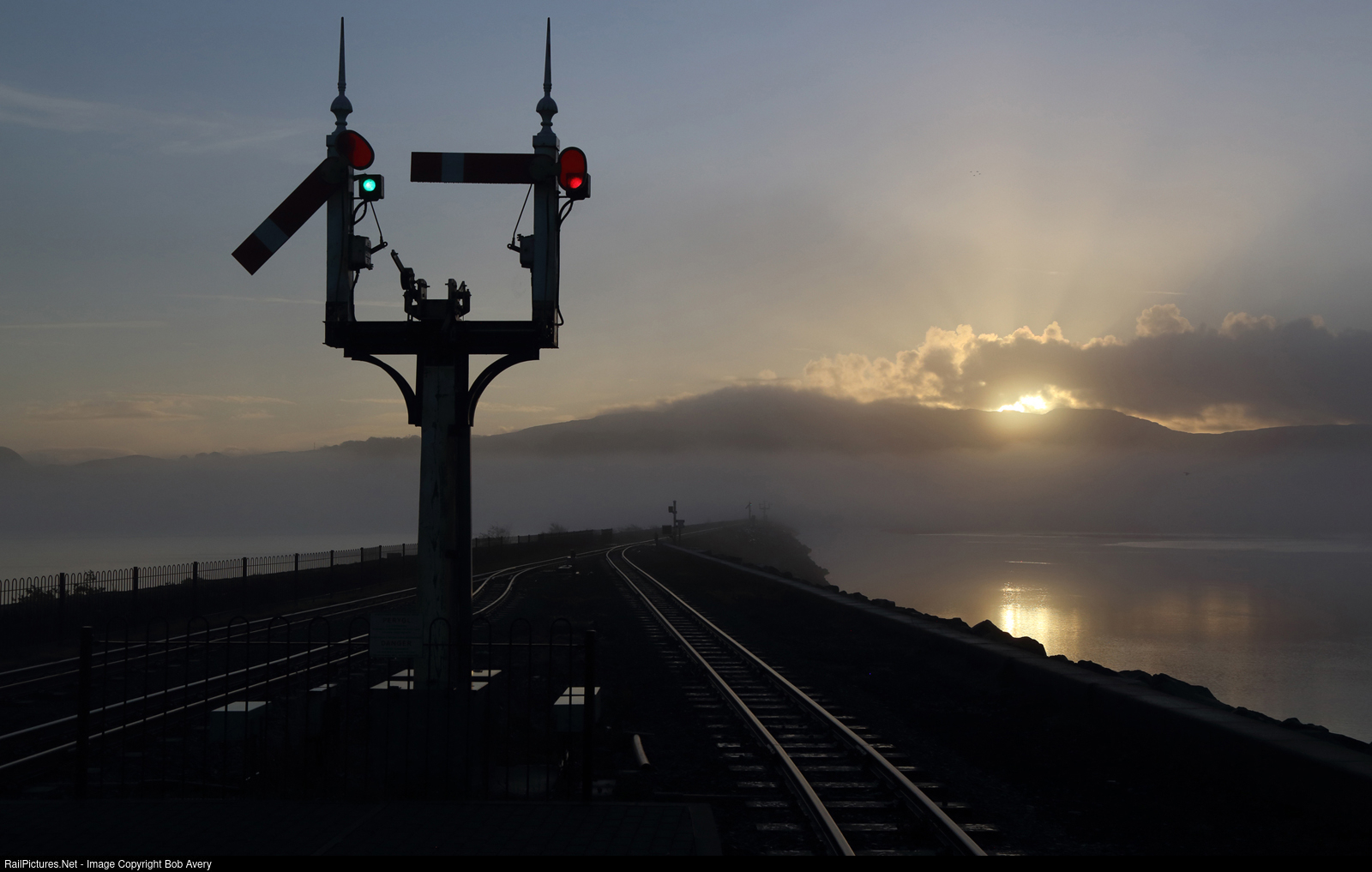 Who need a train? Dawn breaks over The Cob at Porthmadog, on the 2' gauge Ffestiniog Railway.