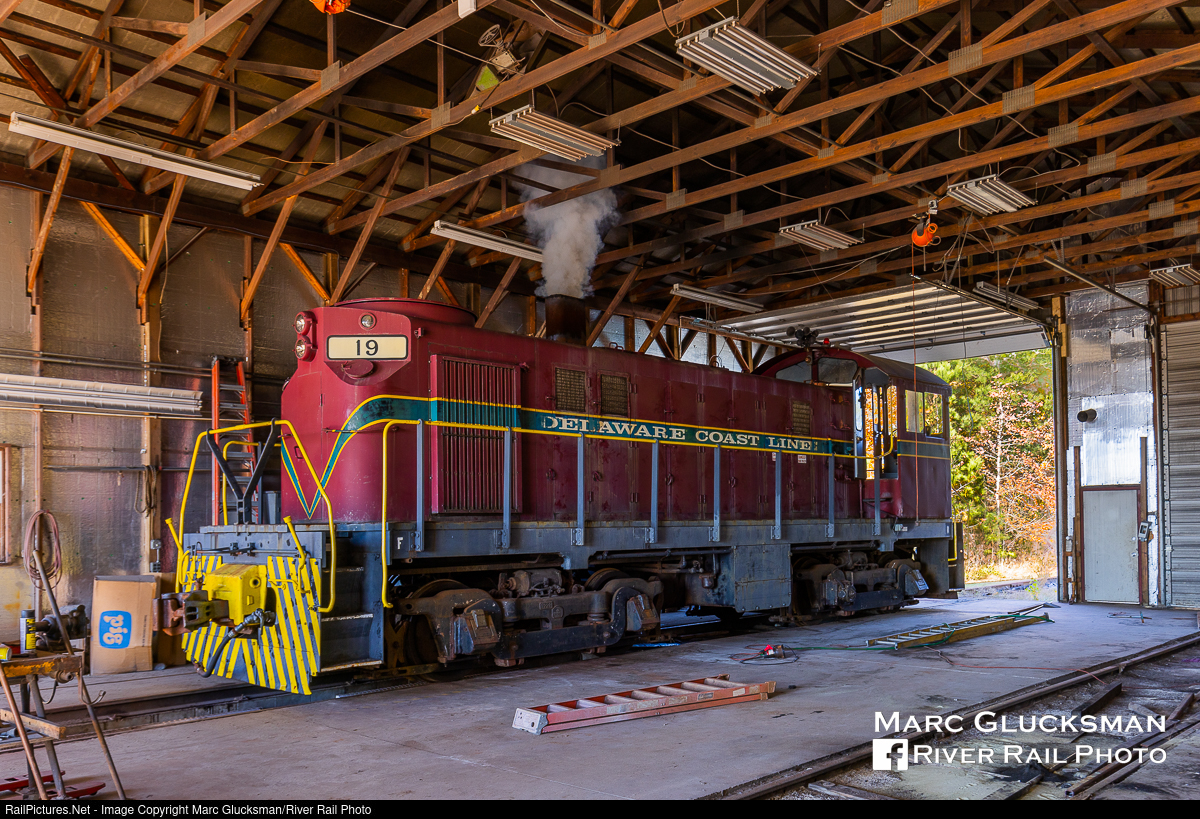 Fire Up 19! On Friday, November 19, 2021, Delaware Coastline Railroad 19 (ex-MDDE 19, exx-CR 9846, exxx-PC 9846, exxxx-PRR 9846, née-PRR 8426, Alco T6, 3/1958) was brought out of its indoor home to do a little switching. After Delmarva Central Railroad won the bid to take over the contract with the State of Delaware to operate what had been DCLR's service area, which was effective January 1, 2019, the DCLR ceased moving customer freight. There were still some assets of the railroad that needed to be moved around for disposition, and so the engine was brought out of its secure (and warm) indoor home to go to work. This is 1 of only 57 Alco T6 units built, and only a handful remain today in museums or on shorelines.