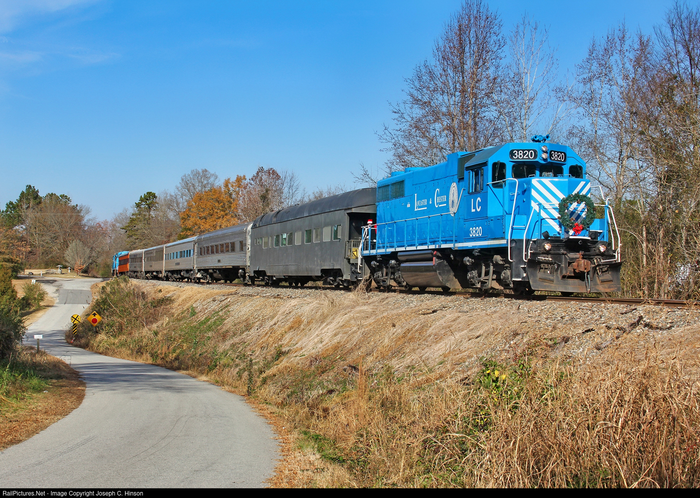 | Lancaster and Chester Railway Santa Train was southbound on the old Southern Railway SB Line in 2021. Most of the time when I shot the L&C Santa Train, the weather was gloomy. 2012 was one of the two best weather days that I shot along with the first train in 2006. Gulf & Ohio curtailed the Santa Trains in 2014. |