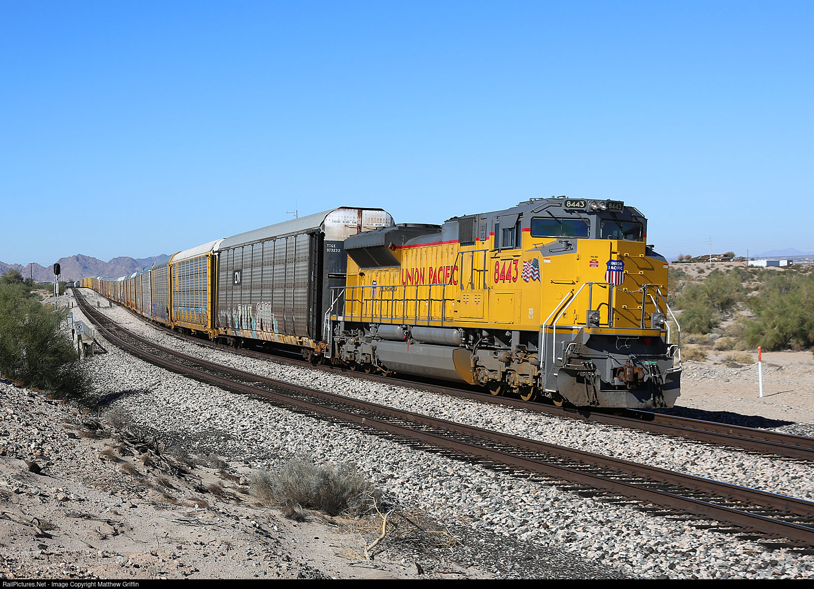 RailPictures.Net Photo: UP 8443 Union Pacific EMD SD70ACe at Ligurta, Arizona by Matthew Griffin