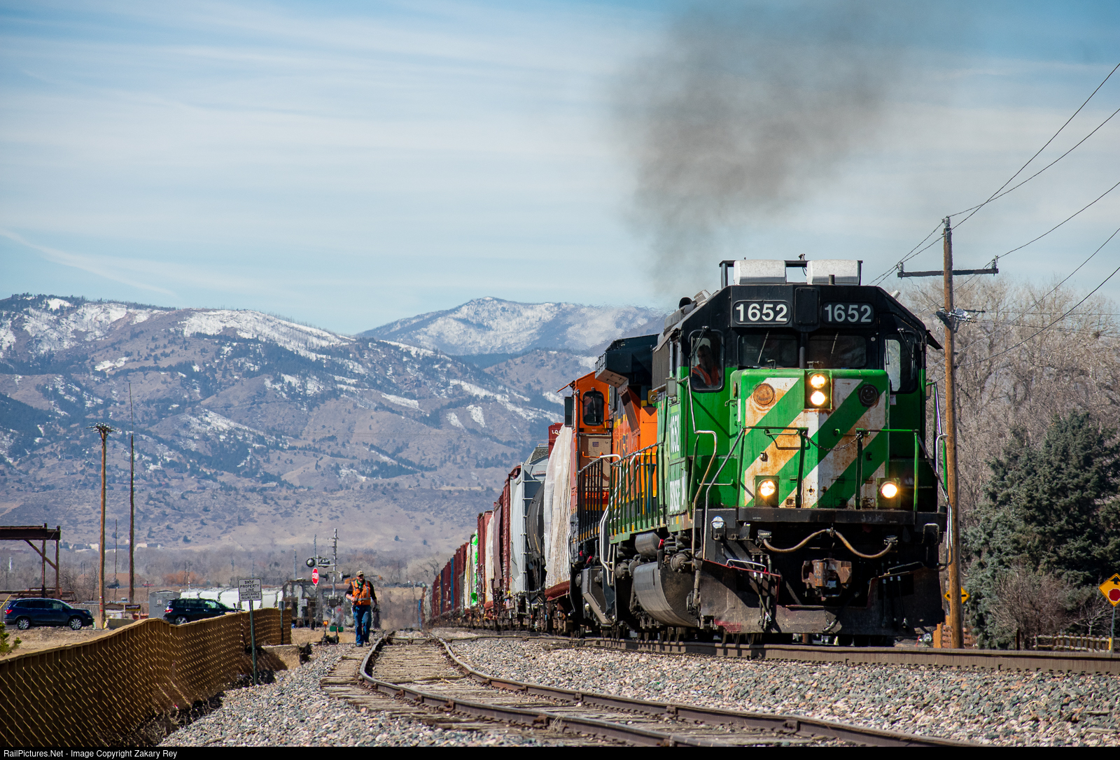 BNSF's 'Longmont Switch' job traditionally has some 1990's era EMD power in the form of SD70MAC's, but with both of those units sidelined in Denver for repairs, ex-BN SD40-2 #1652 got the call for work, along with ex-ATSF B40-8W #528. Seen here switching the north end of North Yard in Fort Collins, CO on a beautiful late winter morning