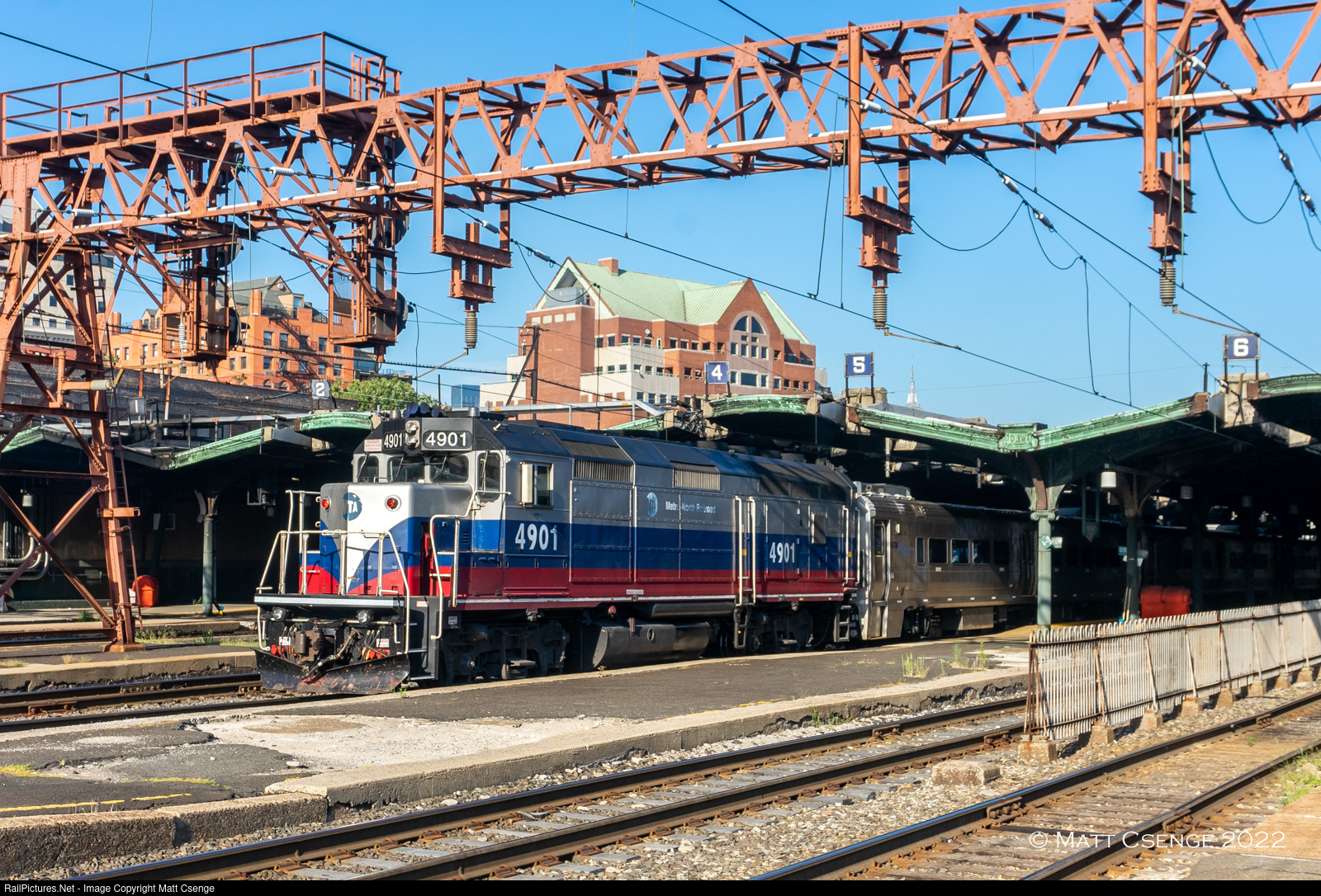 Metro-North Railroad GP40FH-2M no. 4901 (EMD, 1966-1970) is pulling train 1269 out of the train shed at Hoboken Terminal. Metro-North's West of Hudson equipment is pooled with NJ Transit's equipment, so these locomotives can in theory be seen anywhere on the system. |
