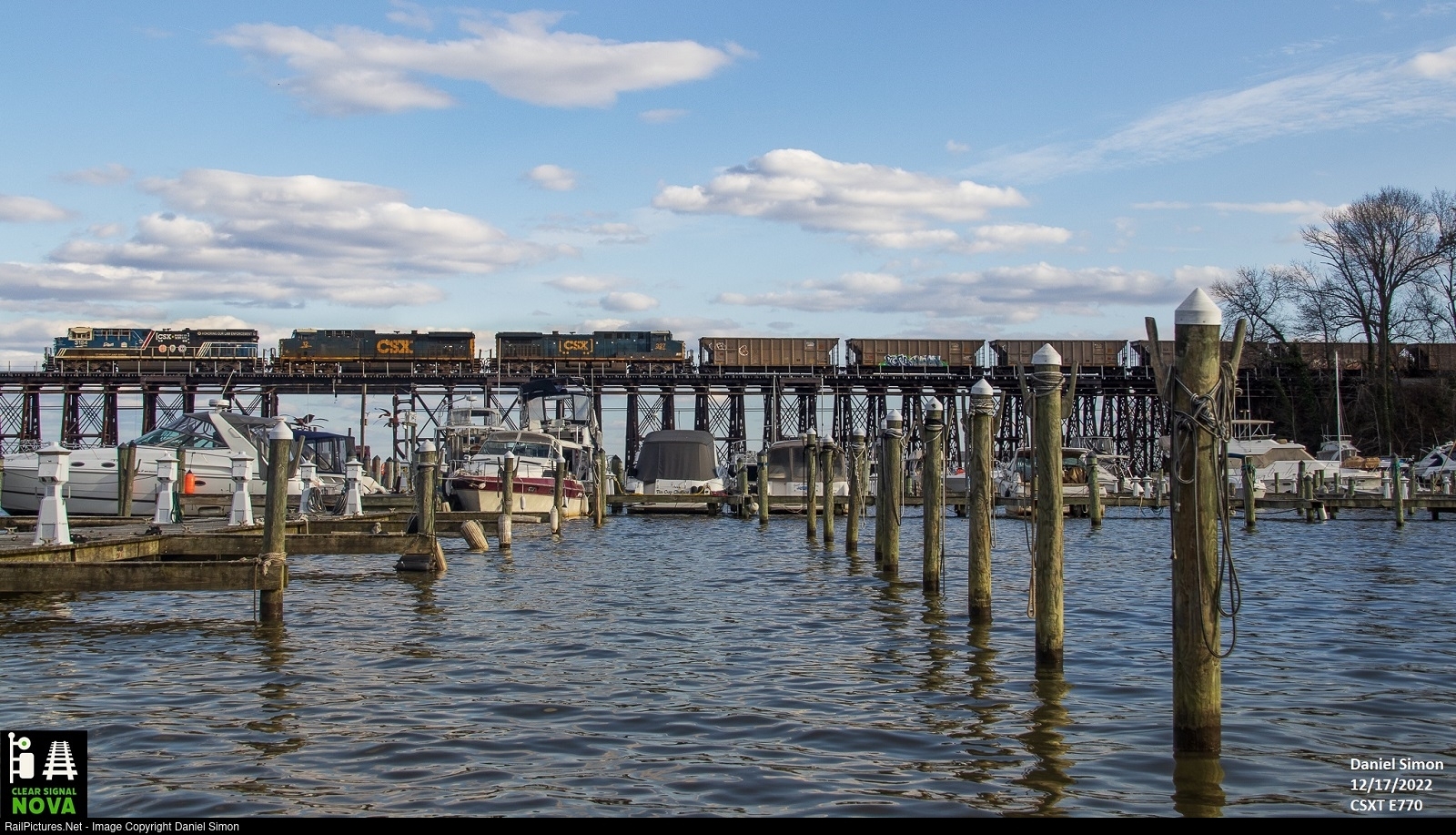 CSX train E770 pulls empty hoppers up the CSX RF&P subdivision lead by the police unit!