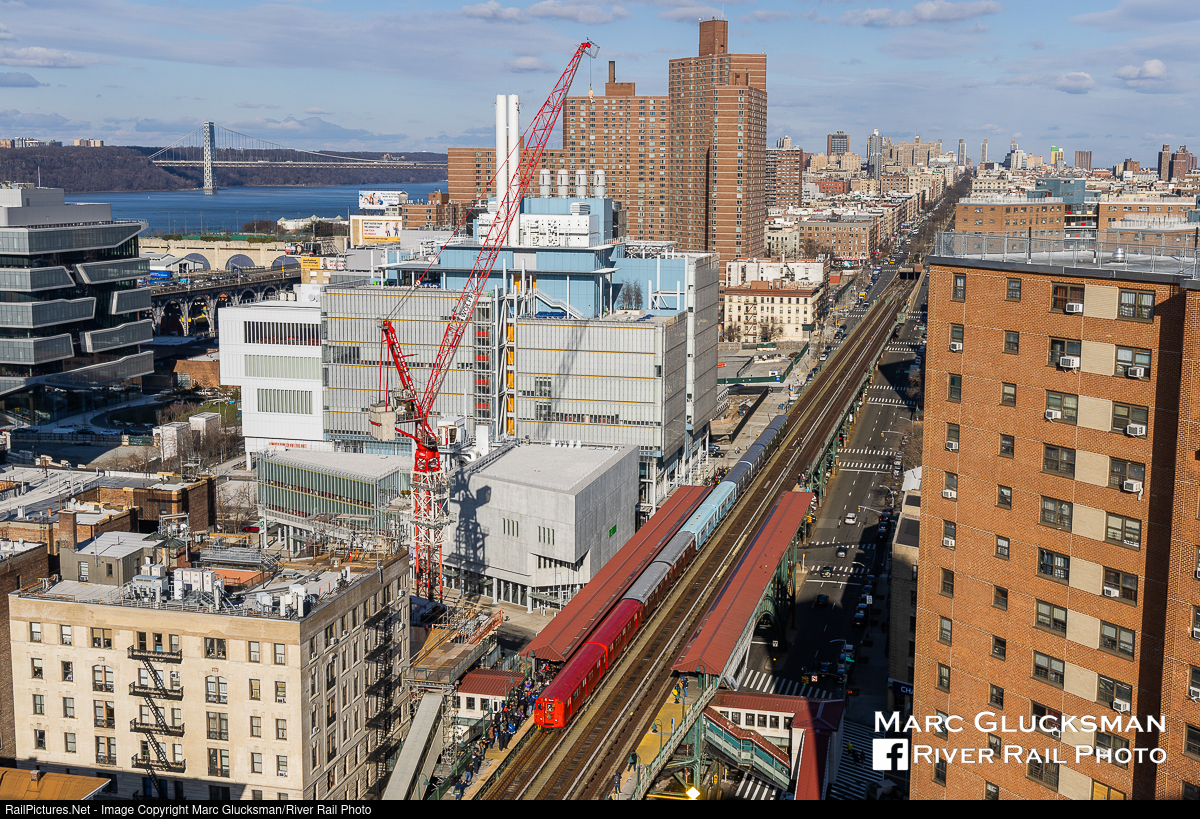Bridges. The Nostalgia Special is stopped at the 125th Street Station as it makes it way back to Chambers Street on the second run of the day. The George Washington Bridge is in the background, spanning the Hudson River from New York to New Jersey since 1931. The Final Trips of the 2022 MTA NYCT Subway/NY Transit Museum Holiday Train. A new experience was created for the 2022 Metropolitan Transportation Authority - MTA NYCT Subway/New York Transit Museum, as for the first time a repainted 10-car train of IRT (Interborough Rapid Transit/A Division/Numbered Line) was operated for this event. The train made 4 round trips between Chambers Street and 137 Street-City College, and there was no extra charge for taking a ride. The cars represent a few contacts of similar cars built by St. Louis Car Company-GSI between 1962-1964, and were all retired from active service by the end of 2003. Enhancing the variety of the experience, the 5 “sets” of cars (4 married pairs and 1 set of 2 single cars) were repainted into 5 different paint schemes that the cars wore over their 40 year careers. From the very bright and long gone 1964-54 World’s Fair Robin’s Egg blue and white to the more recent “Gunn Red” Redbirds, this train was indeed of many colors. On Sunday, December 18, 2022, the last of the four weeks of this special train operating, the crowds came out in force as they had for the previous weeks, showing that these holiday runs are as popular as ever. 9069-9068 Kale Green “Green Machines” (R-33) 9010-9011 Blue-And-Silver “Platinum Mist” (R-33) 9308-9307 “Robin's Egg” (R-33WFS) 9586-9587 “Gunn Red” Redbirds (R-36WF) 9016-9017 "Tartar Red” (R-33)