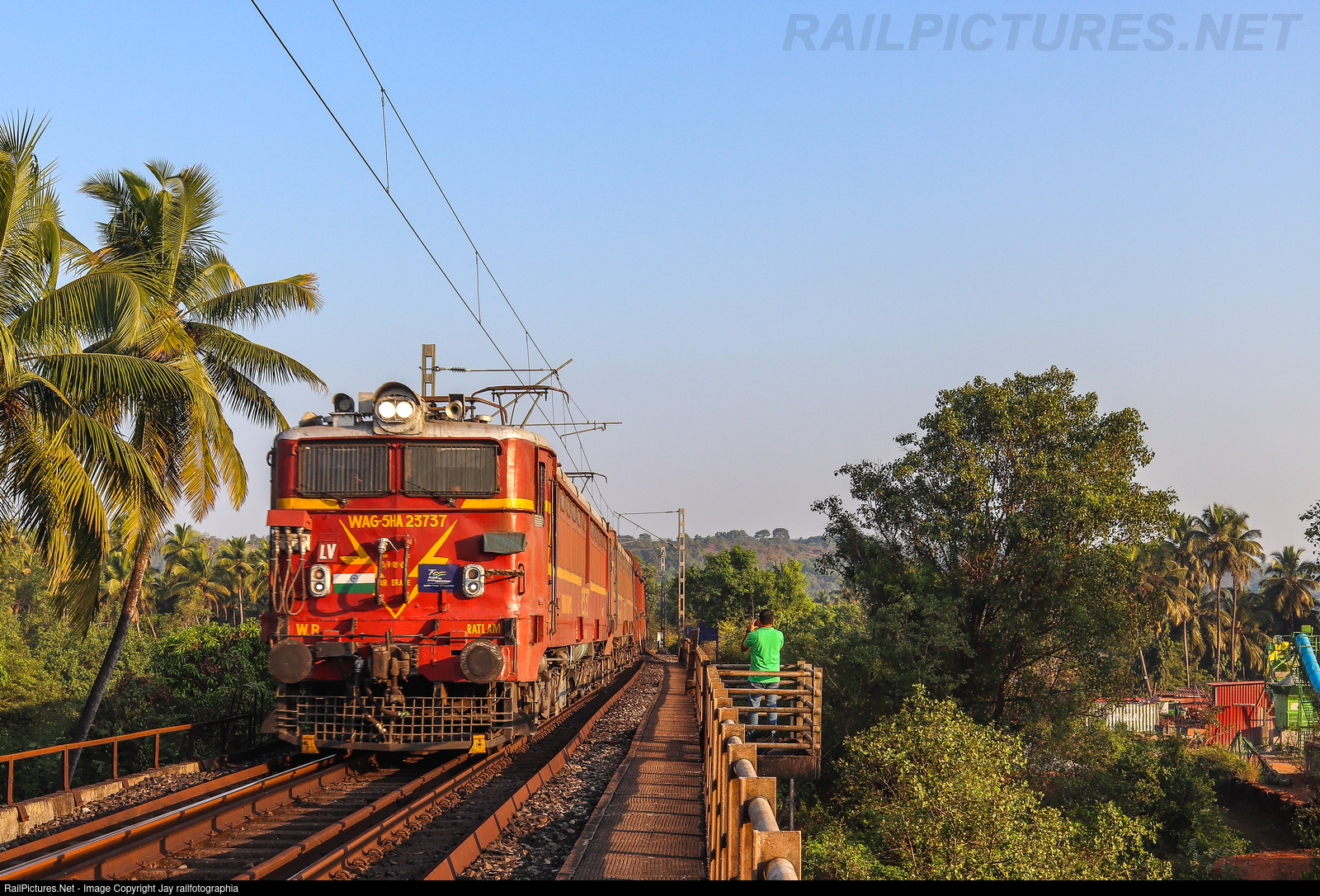 Old workhorse, RATLAM WAG-5HA with its shed mate rolling into Sharavati river B bridge with BCNA freight in morning light