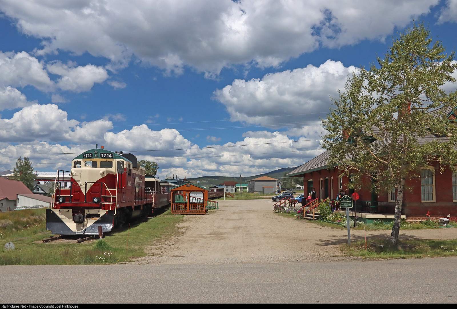 A day before the 2022 Leadville 100 mountain bike race, LC&S 1714 idles at the depot between trips. This line's legacy was as a narrow gauge terminus for the Colorado & Southern, but detached past Climax after the 1920s, then converted to a standard gauge line. The line was abandoned by C&S in 1986 after 105 years of continuous service.