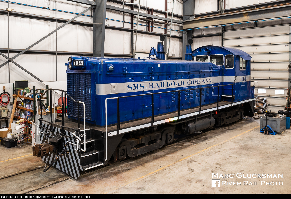 Still Blue.The most recent addition to the fleet, SLRS 104 (ex-CPGP, née-MKT 15, SW1200, EMD, 2/1952) was brought to the SMS Rail Lines property in Logan Township, New Jersey from the now closed Carneys Point Generating Plant. After relettering and mechanical work, the engine is almost ready to be sent to its final destination for service for the company.